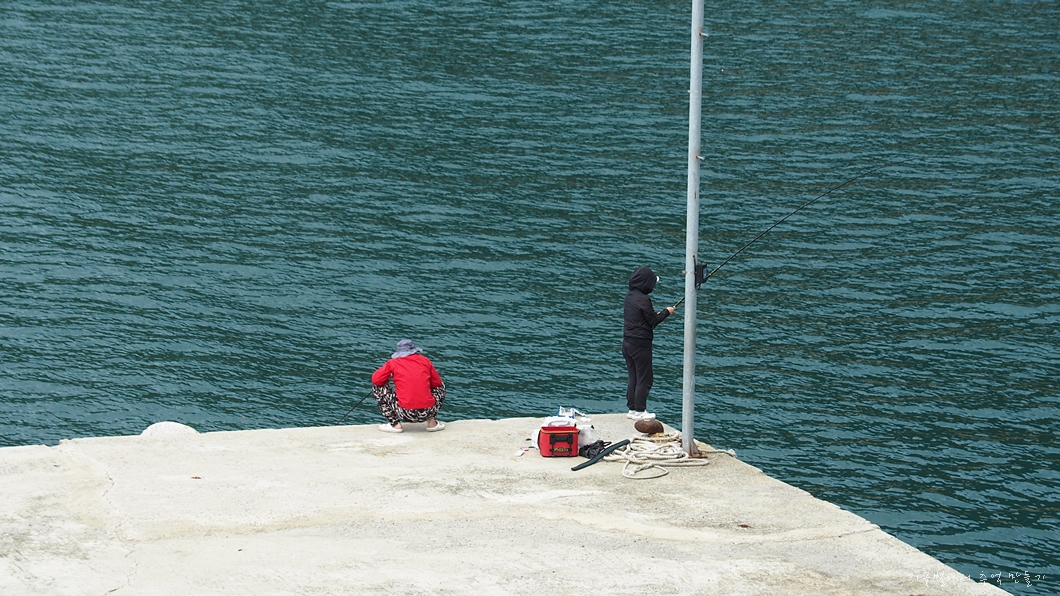 두 분이 낚시에 여념이 없는데 한참을 기다려봐도 건져 올리는 게 없는..
