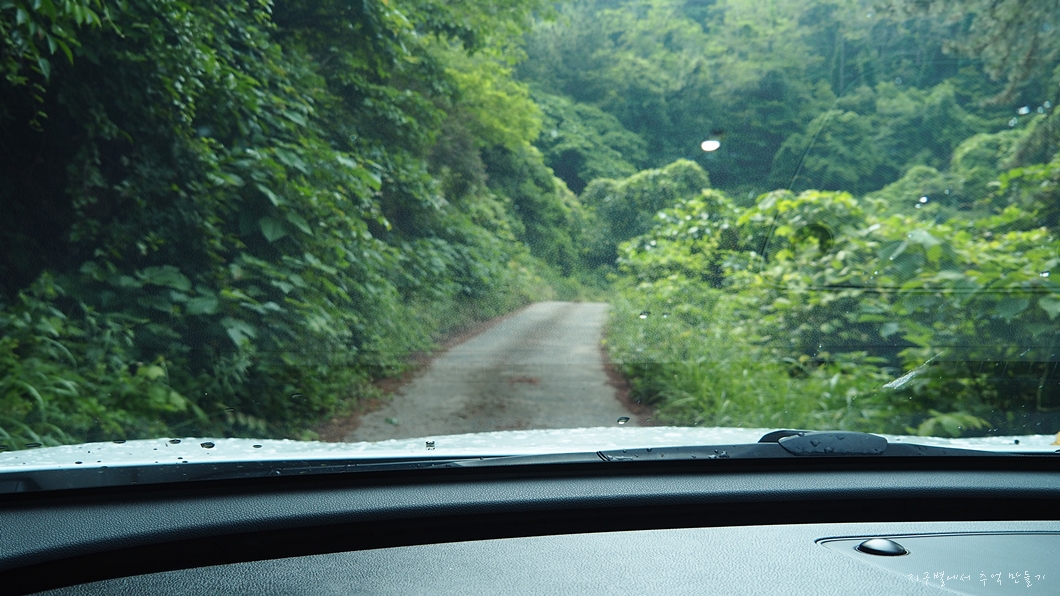 도로는 아주 좁고 교행 할 곳이 거의 없습니다.