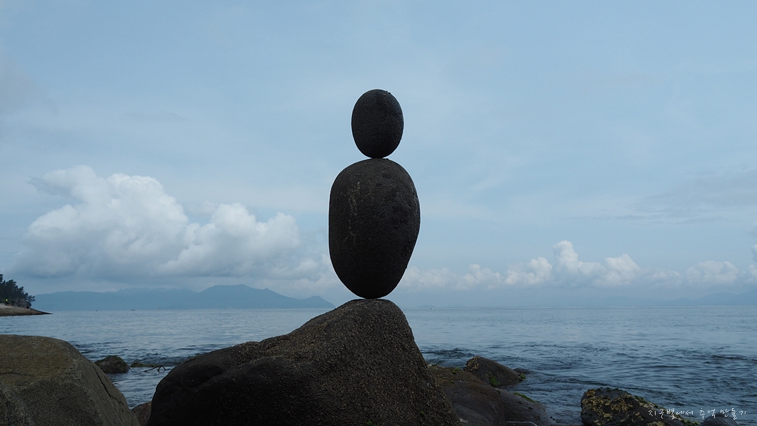 바닷가에서 일없이 멍 놀이를 즐기고.