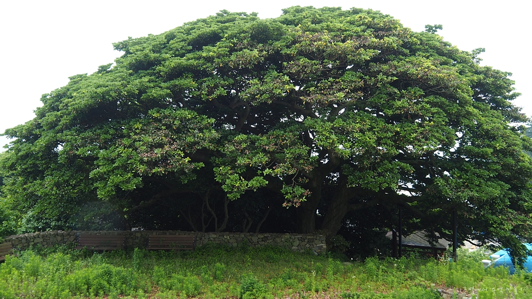 연세 500살, 가지가 바닥에서 올라와 곧장 두 가지로 나누었는데 하나는 바다로 향해있고 하나는 위로 올라갑니다.