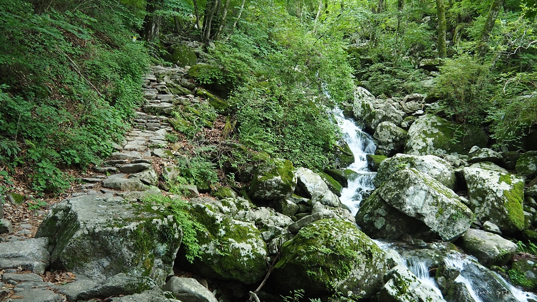 백무동에서 곧장 장터목으로 올라서 천왕봉 다녀오고 하산은 연하선경 지나 촛대봉 조망 구경하고 세석대피소에서 물 두병 가득 채워 한신계곡으로 내려왔답니다. 연일 내린 비로 그림 같은 폭포들이 온 계곡에 가득하네요.