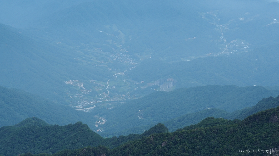 아침에 차를 몰고 오도재에서 내려왔던 도로가 보이네요.