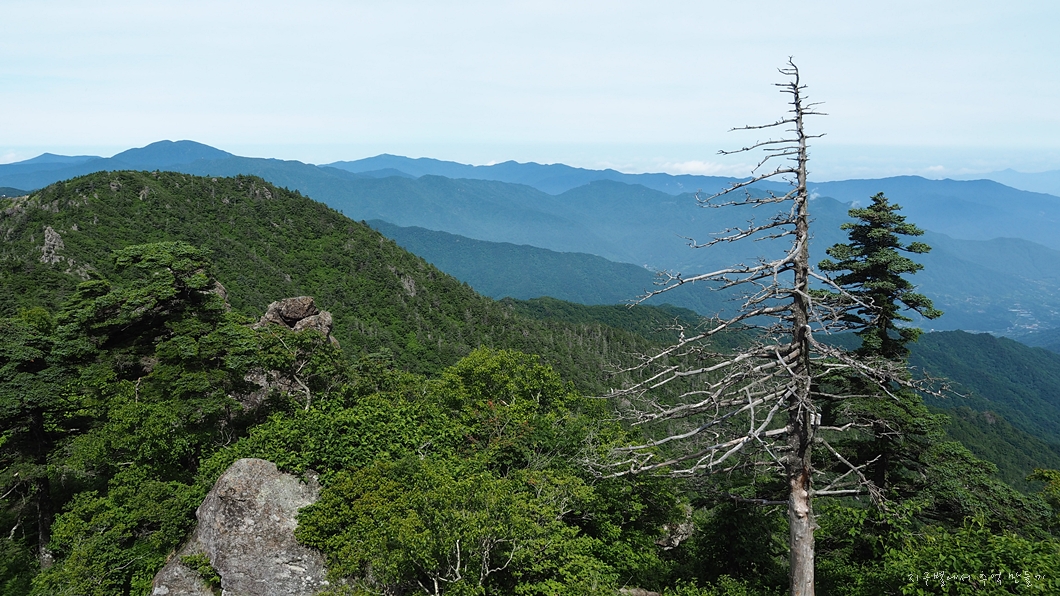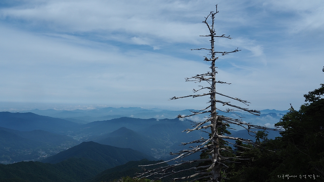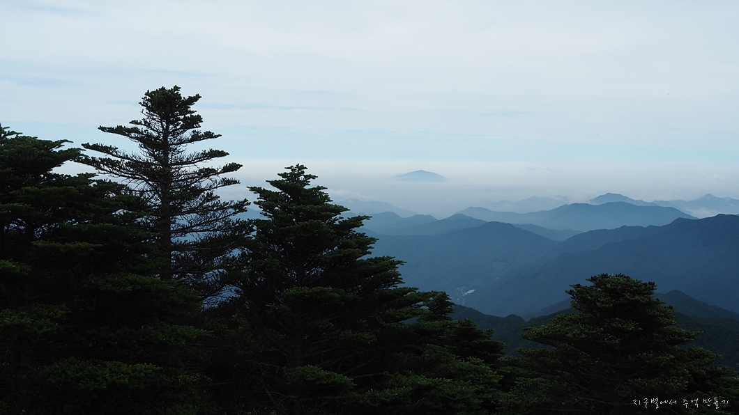남덕유 앞에는 대봉산이지유. 계관봉이 더 높아 보이구요.