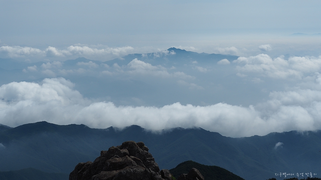 지리산에서 덕유능선이 이렇게 깔끔하게 보이는 경우가 많지 않은데 오늘 아주 예쁘게 보입니다.