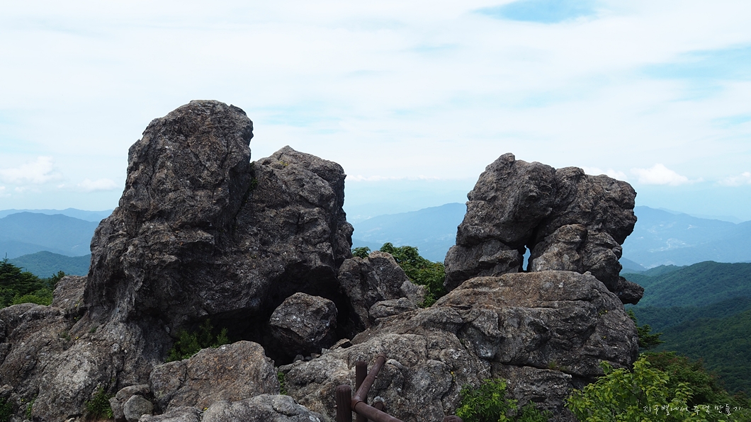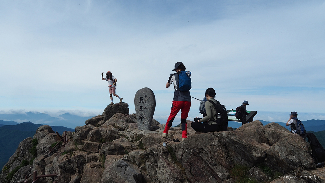 천왕봉 정상석은 아무래도 자리를 잘못 잡았으유.