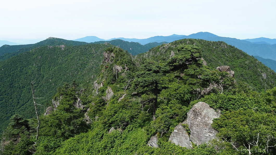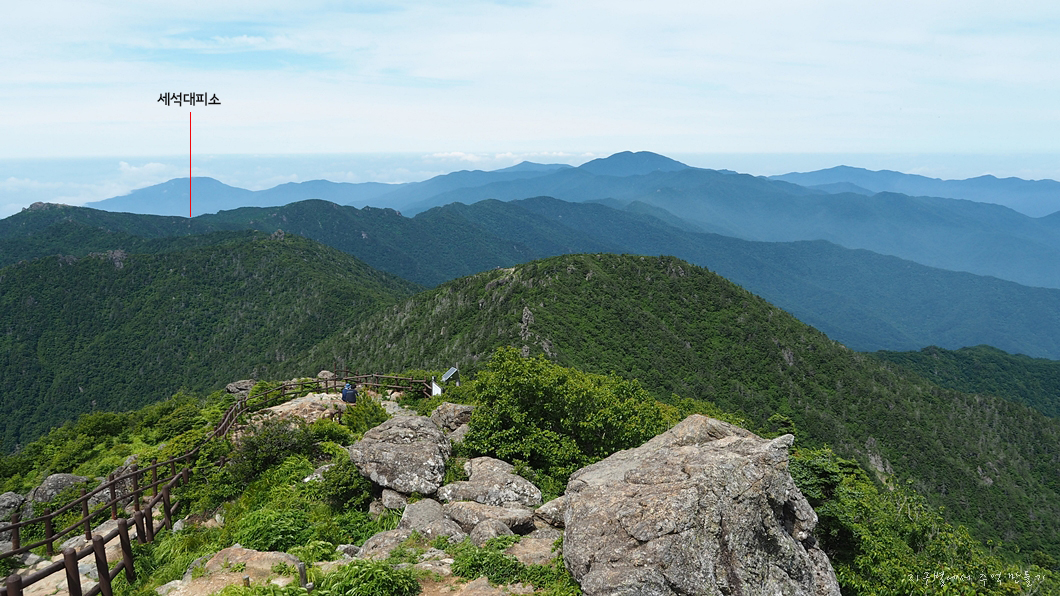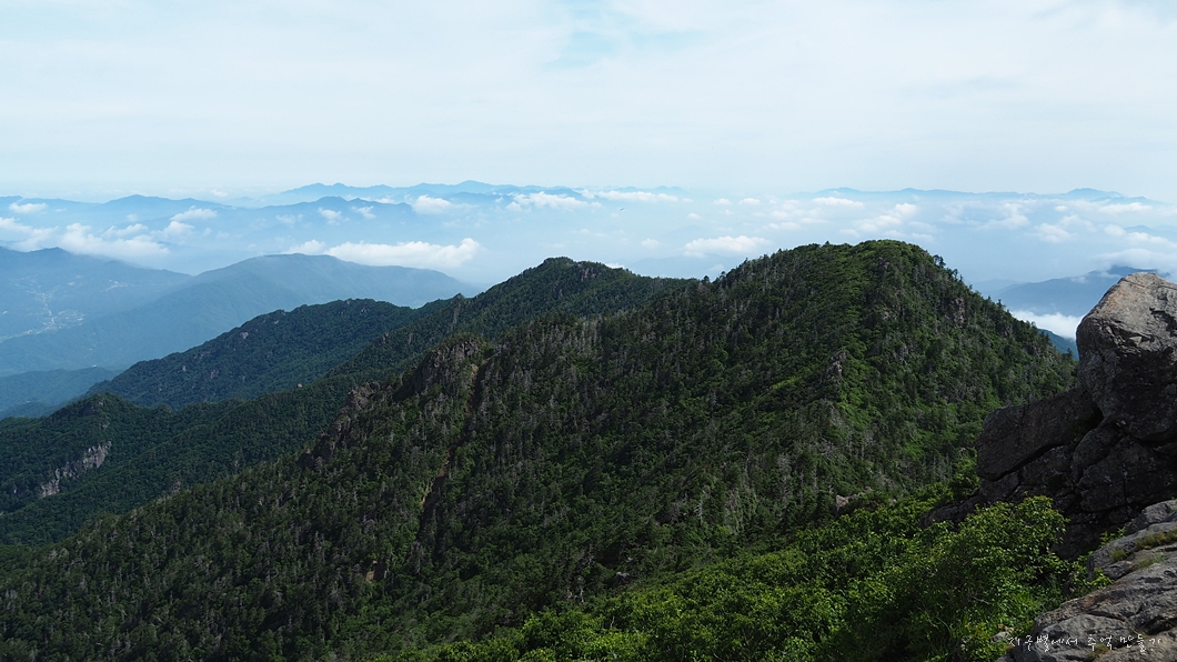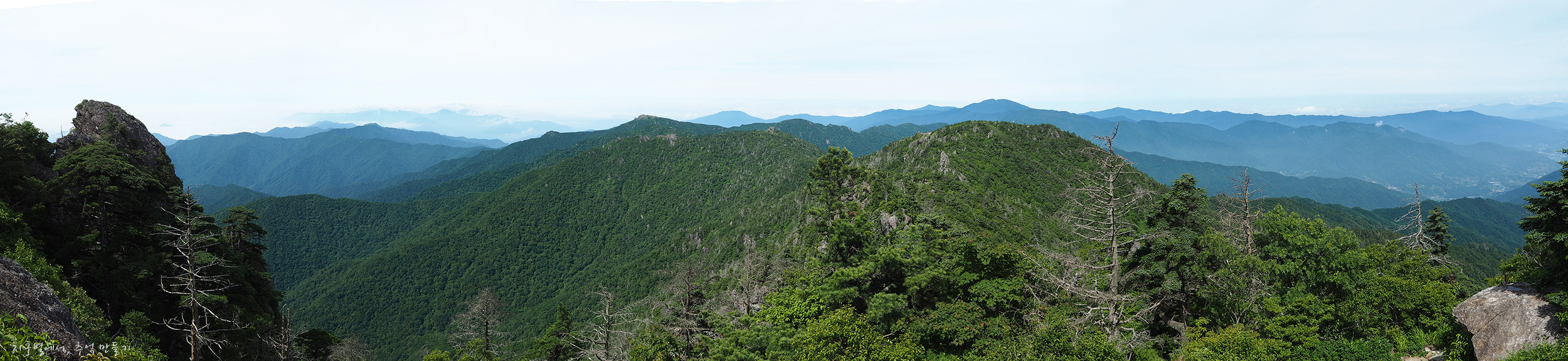 제석봉에서 고개를 돌려 보는 주능선 파노라마