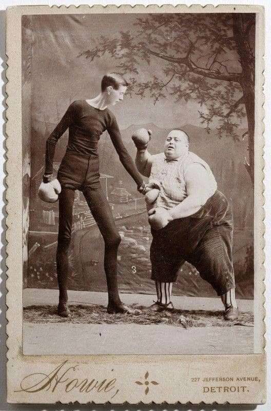 살아있는 해골(Living Skeleton)과 뚱뚱한 남자(Fatman)로 알려진 조지 무어(George Moore)와 프레드 하우(Fred Howe)는 서커스의 사이드 쇼에서 코믹한 연기로 인기가 높았는데 그들은 각각 운동을 늘려야 한다는 의사의 권고에 응하여 하나는 살을 찌우고 다른 하나는 살을 빼기 위해 운동 루틴을 만들었지만 결국에는 돈을 벌기 위한 수단으로 완벽하게 성공했습니다.