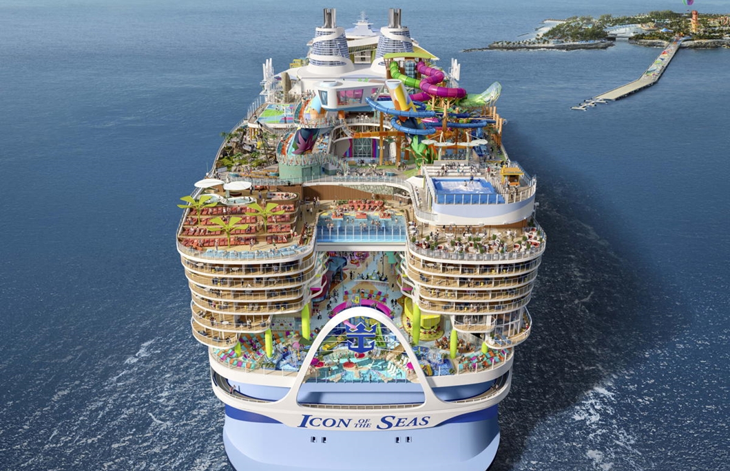 Royal Caribbean International사의 아이콘 오브 더 시스(Icon of the Seas)라는 이름의 유람선으로 길이 365m의 초 매머드급으로 예상 중량은 250,800톤입니다. 현재까지는 프리덤 오브 시(Freedom of the seas)라는 배로 15만 8,000톤급이구요.