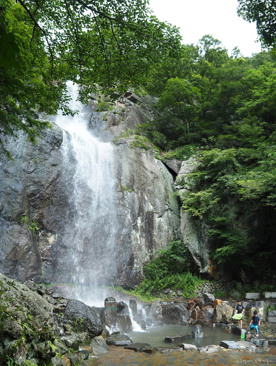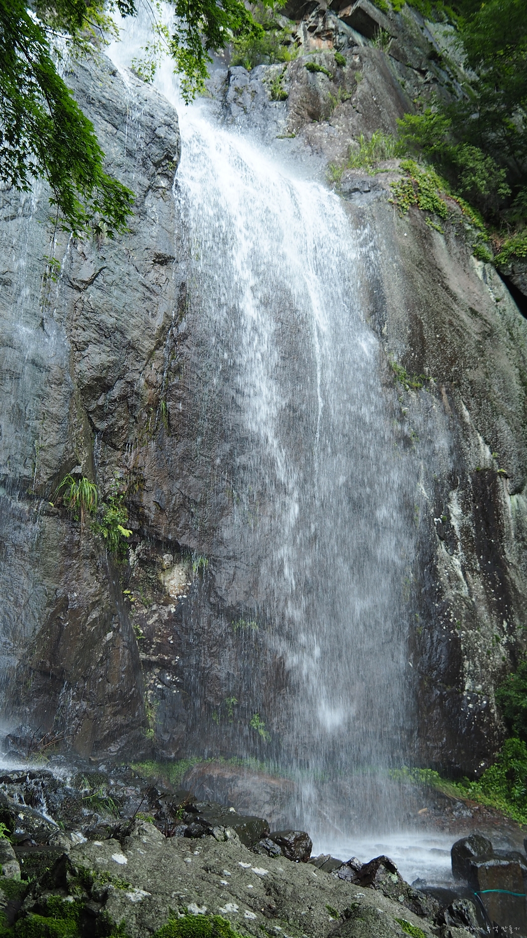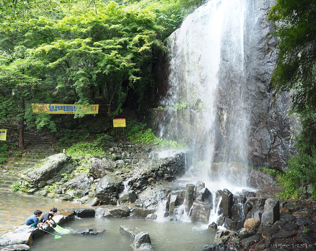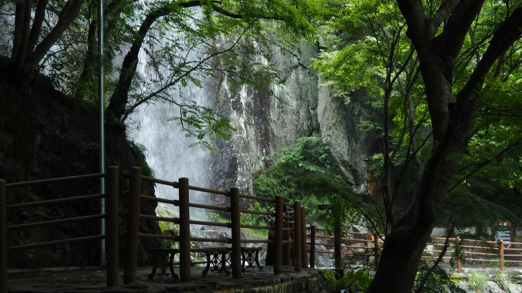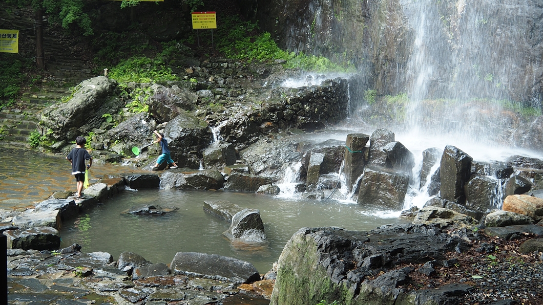 어느 폭포든 마찬가지로 비가 내리지 않으면 별 볼일 없지만 요즘 같은 장마철에는 귀청이 따가울 정도로 우렁차게 흘러 내리지유.