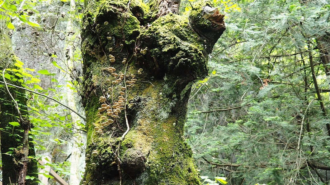 올라가는 데크 계단길 주변으로는 산모기들이 계모임 하는지 득실대다가 막상 폭포 주변에는 한 마리도 없습니다.