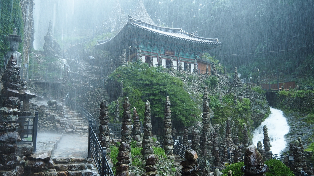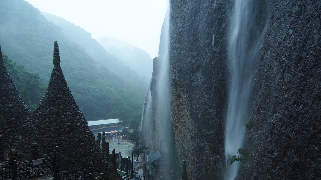 빗줄기가 약해지거나 비가 그치면 그 순간 폭포는 순식간에 사라지구요.