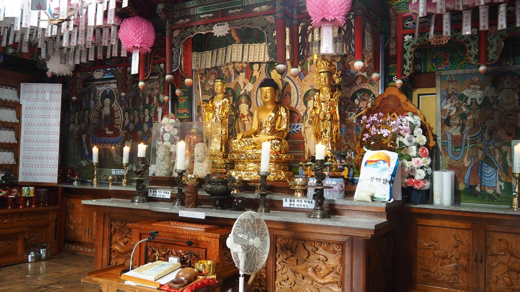 대웅전 부처님께 인사를 드리는데 바깥의 요란스러움을 아는지 모르는지 평안한 얼굴입니다.