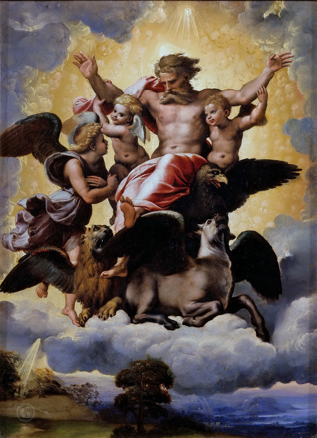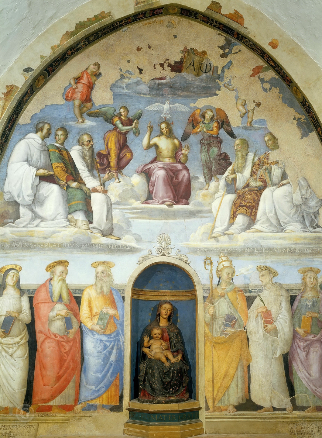 Holy Trinity Flanked by Six Benedictine Saints Above and Six Other Saints Below (jointly with Perugino)