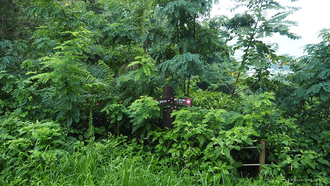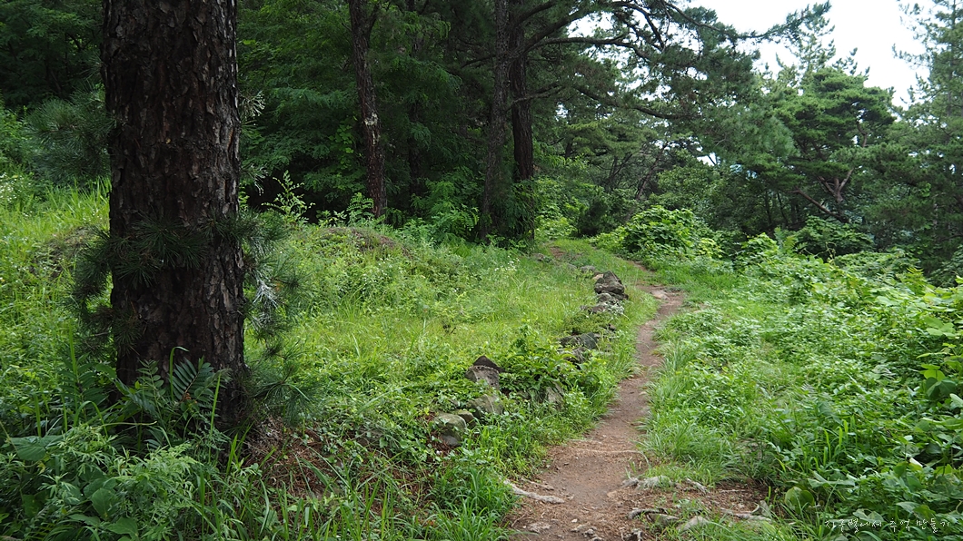 하루종일 비가 내리다 말다 하는 날씨가 이어져 반바지 차림에 스틱 대신 장우산을 들고 올랐구요.