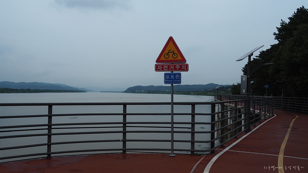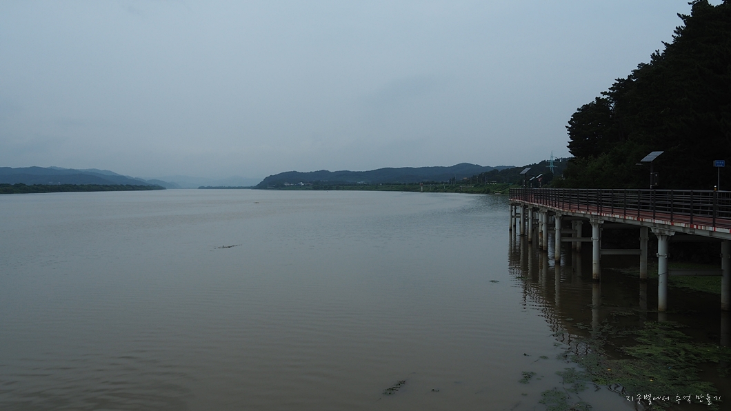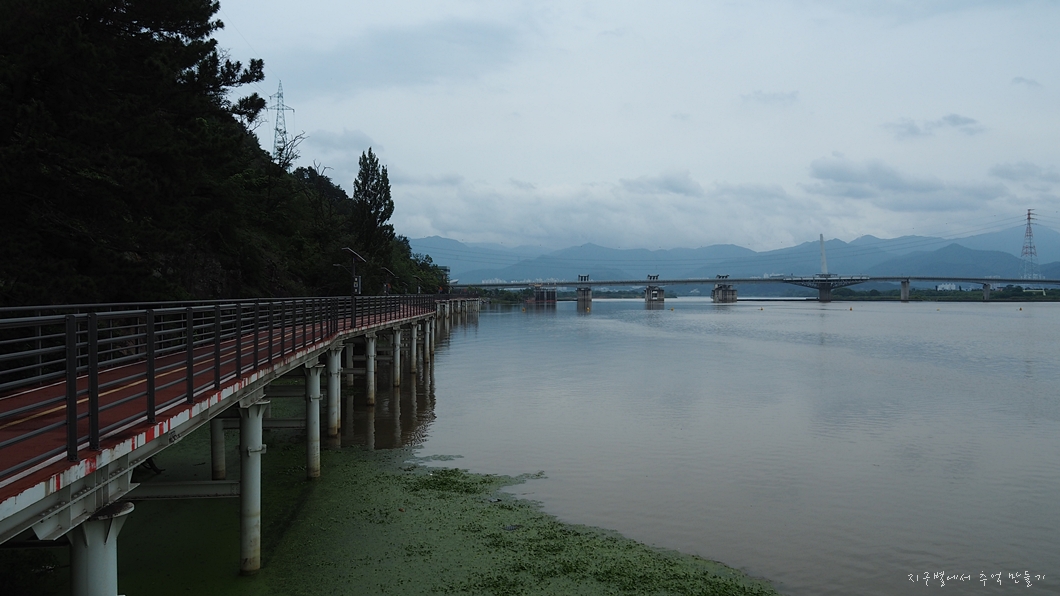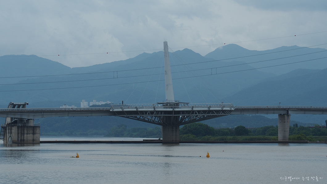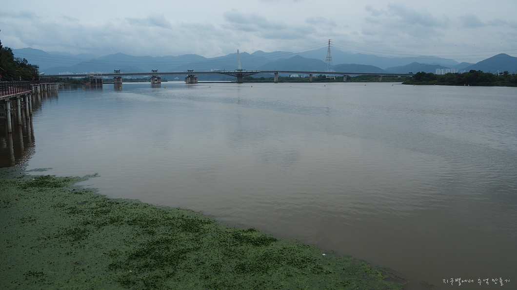 엄청난 강물만 가득하고 멀리 강정보가 보이네요.