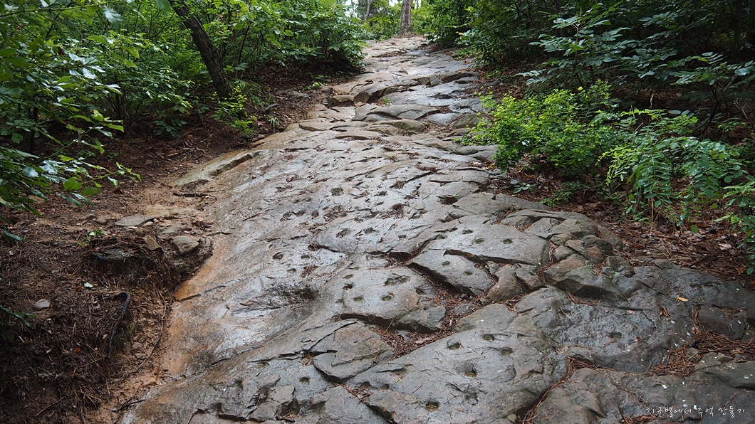 정상으로 올라가는 바위길에 곰보자국이 가득합니다.