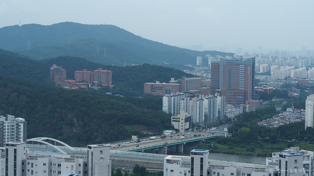 죽전의 고층 아파트 숲과 좌측으로 두류 83 타워가 보이네요.