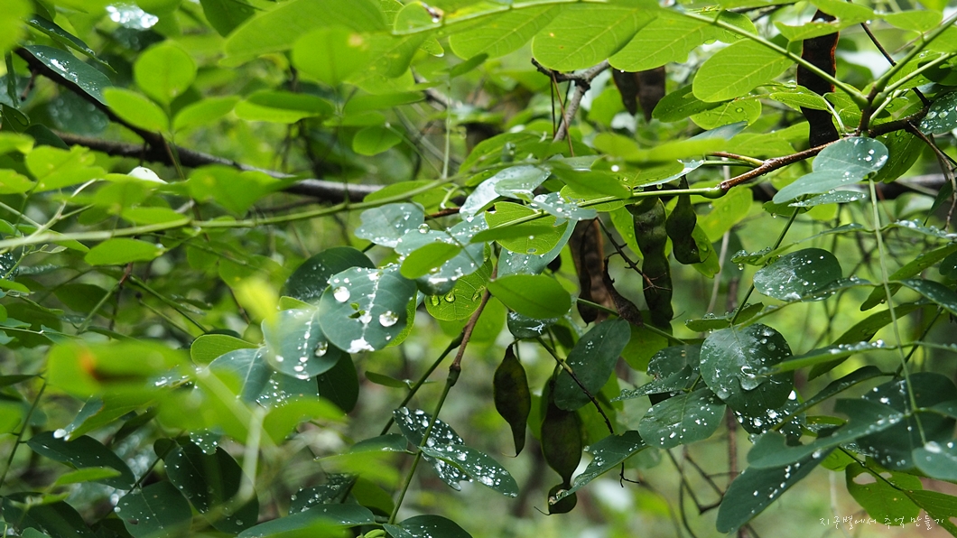 빗물 맺힌 풀숲 지나가니 옷은 금방 젖고..