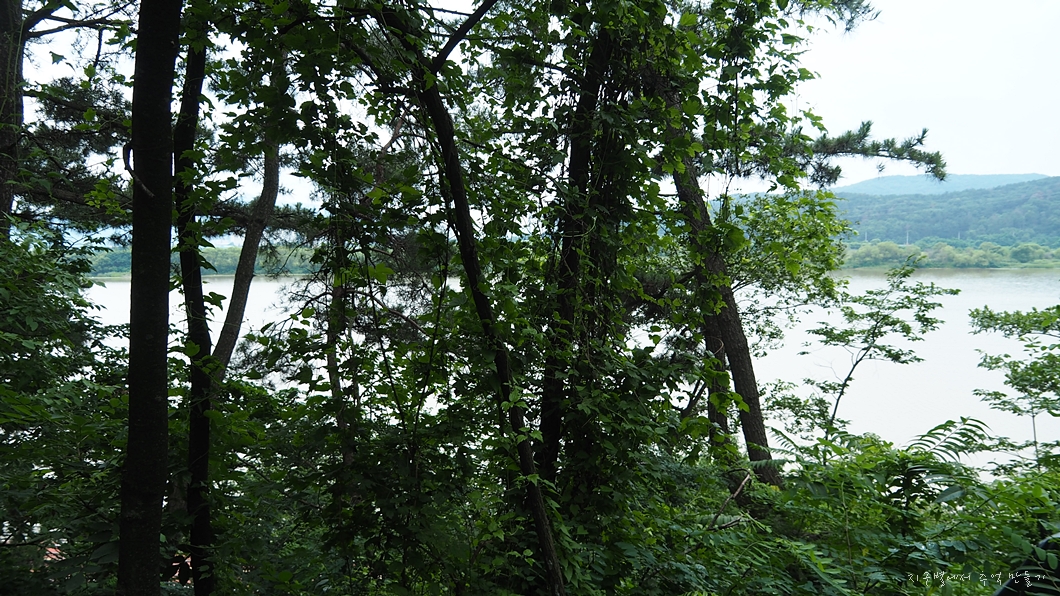 앞쪽 나무 사이로 낙동강 황토물이 보입니다.