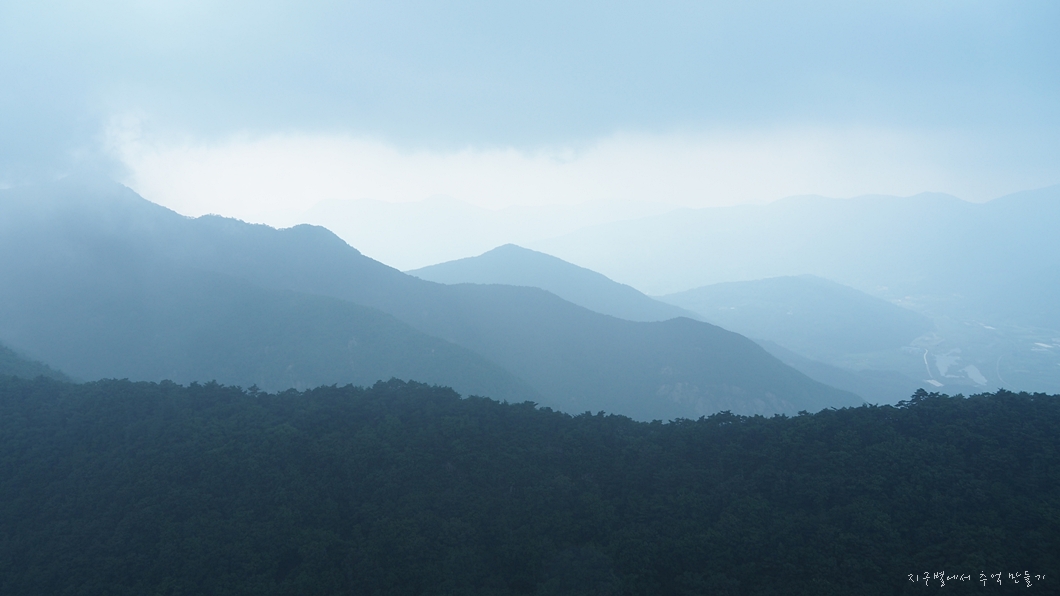 산 위에서 추웠던 몸이 다시 후텁지근한 날씨에 땀이 흐릅니다.