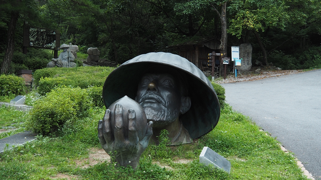 묘소 아래는 소공원으로 꾸며져 있는데 김삿갓의 두상 조각이 있고 손에는 천도복숭아를 들고 있답니다.