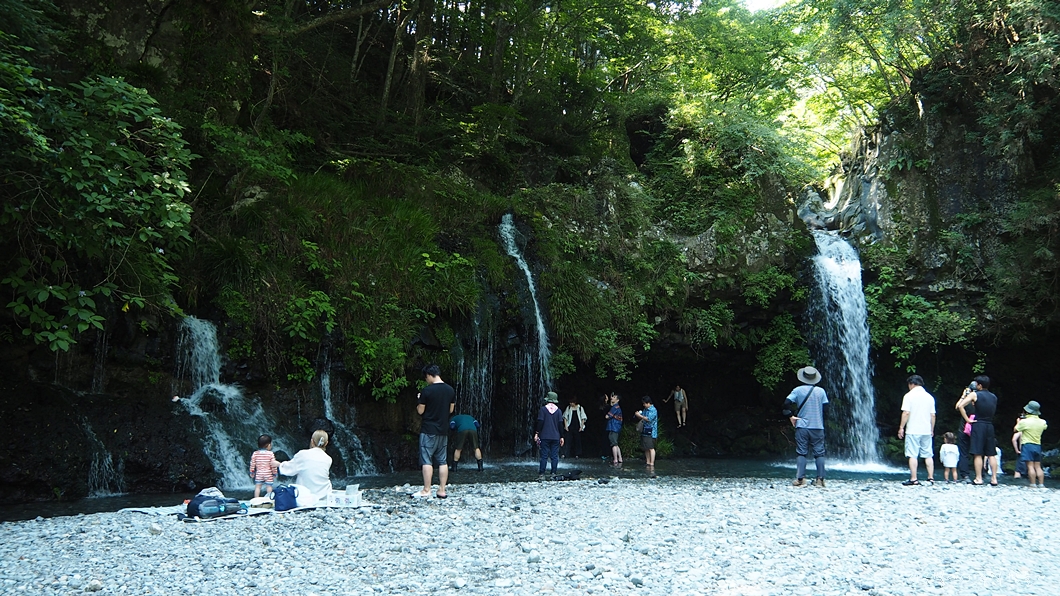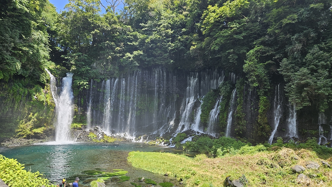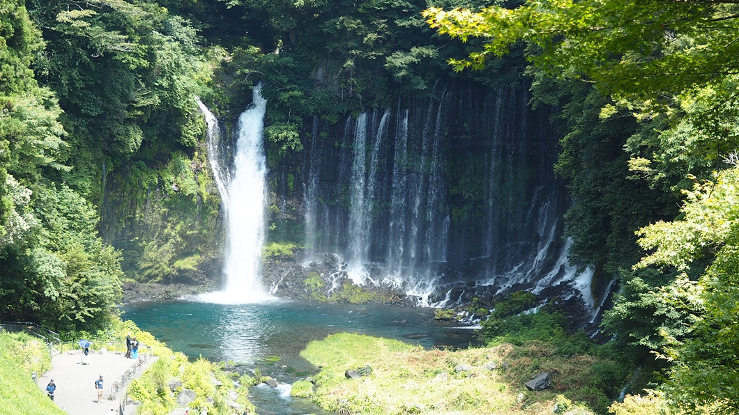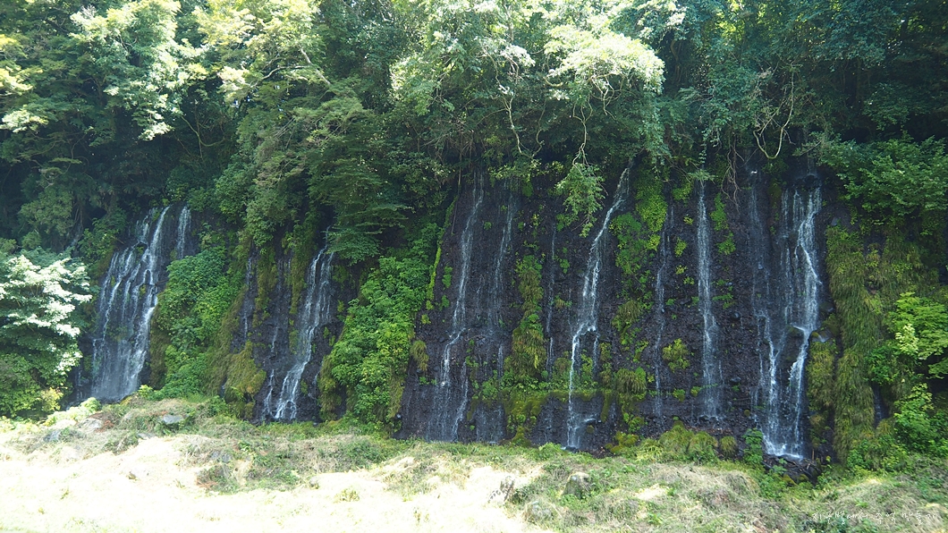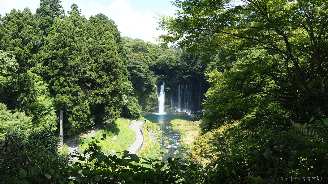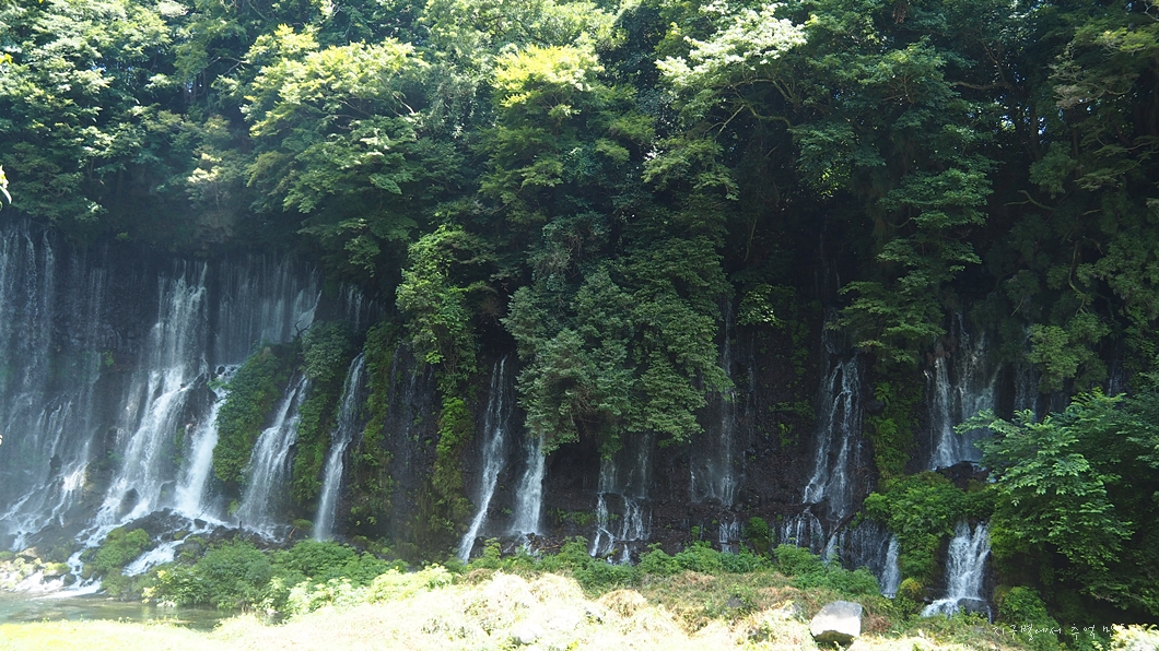 후지산에서 솟아 나온 물이 흘러서 만든 폭포로 크고 작은 수백 개의 폭포가 나란히 이어져 있습니다.