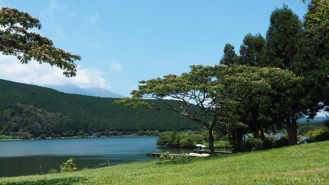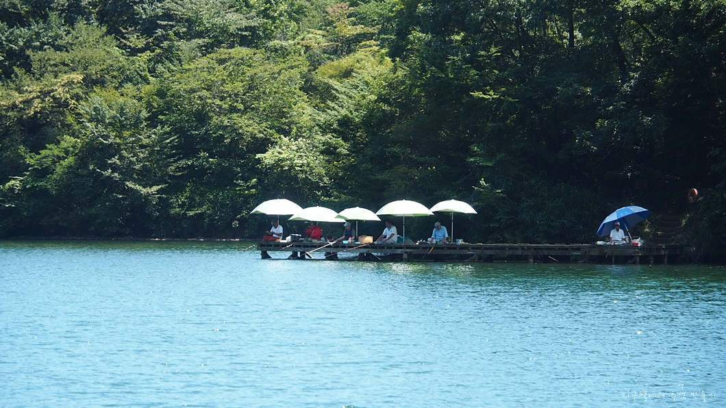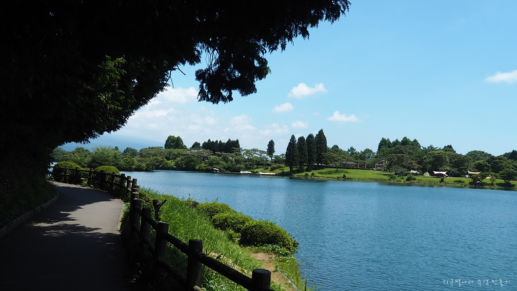 밥 먹고 둘레길 트레킹을 위하여 타누키호수(田貫湖) 도착.