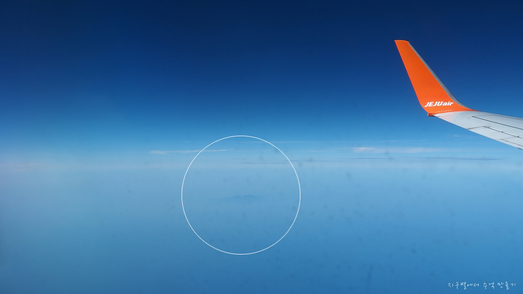 인천에서 동해로 빠져나가 일본 남동쪽으로 날아가는데 중간에 잠시 창밖으로 눈을 돌렸더니 울릉도가 보이네요.