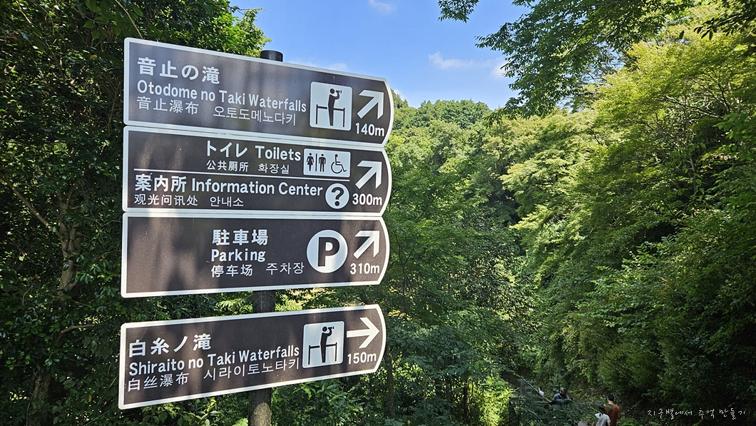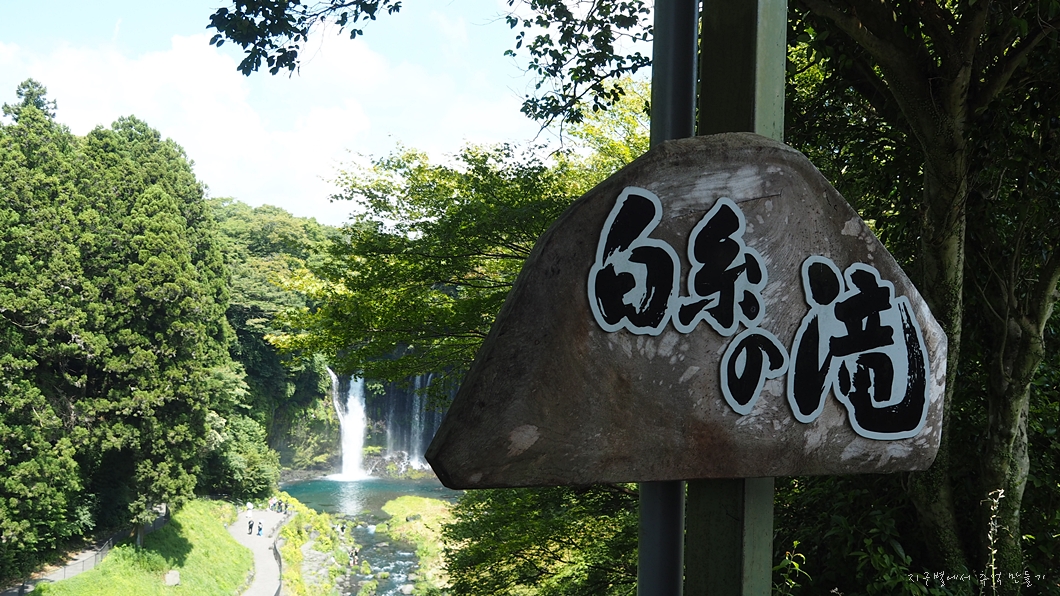 폭포 이름은 하얀 실((白糸)의 폭포. - 일본말로 시라이토노타키(白糸の滝)