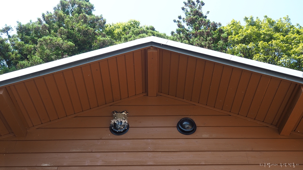 어느 집 처마 아래 둥지를 틀고 있는 제비 가족.