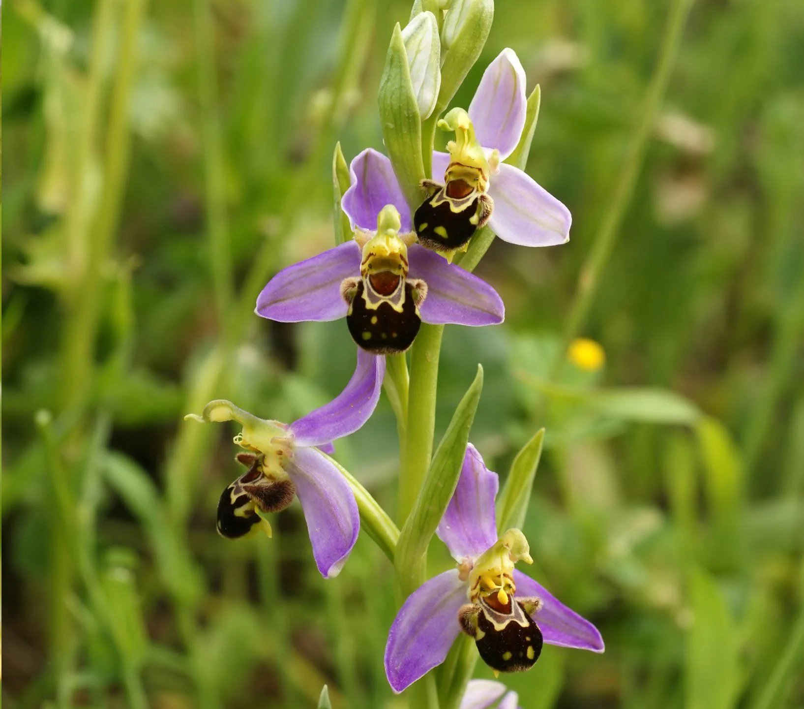 보송보송한 털, 꿀벌과 같은 형태와 색, 같은 향의 페로몬으로 꿀벌난초꽃은 수컷 꿀벌을 완벽하게 유인합니다.