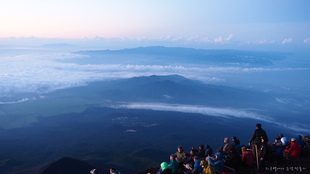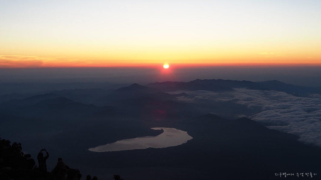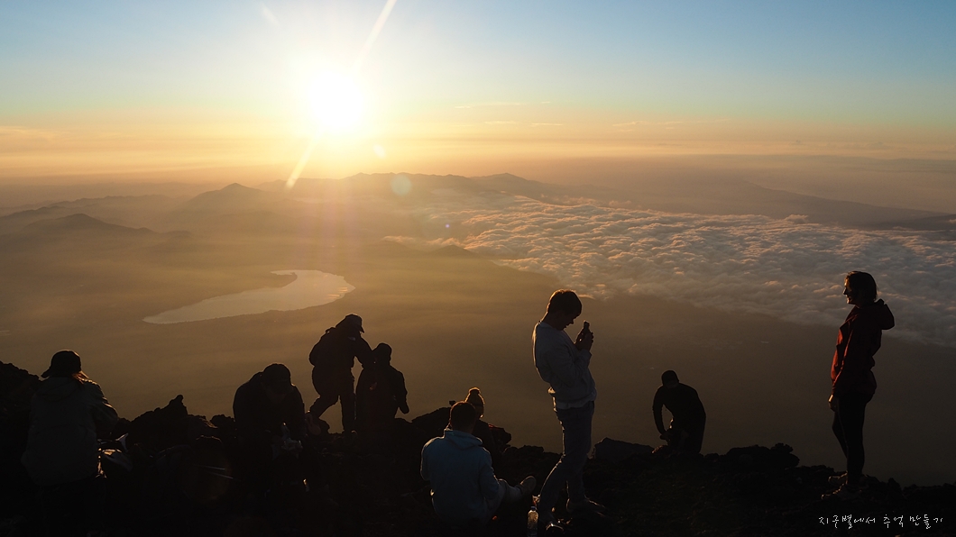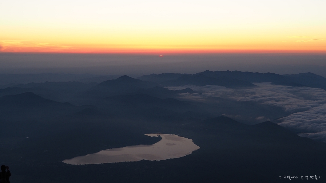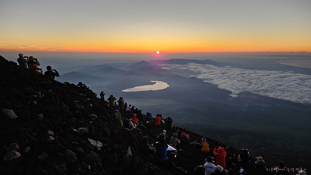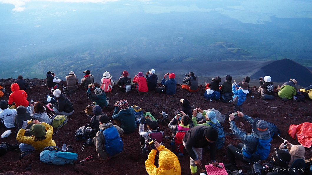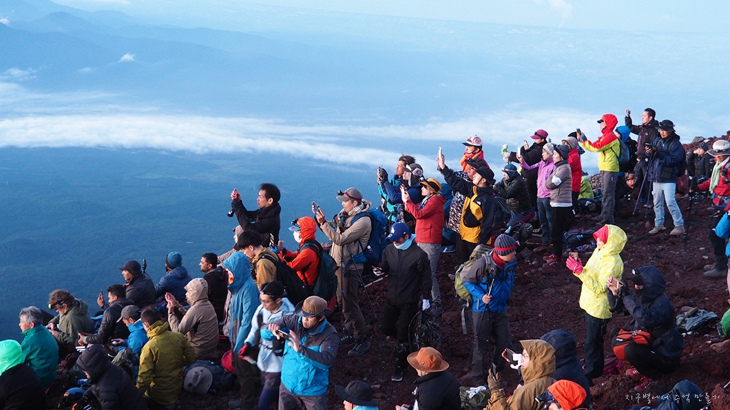후지산 일출은 우리가 흔히 지리산 천왕봉 일출을 볼 때 3대가 덕을 쌓아야 가능하다고 하는데 이곳은 날씨가 더 변화무쌍하여 일출 구경이 그리 흔하지 않다고 하네요.