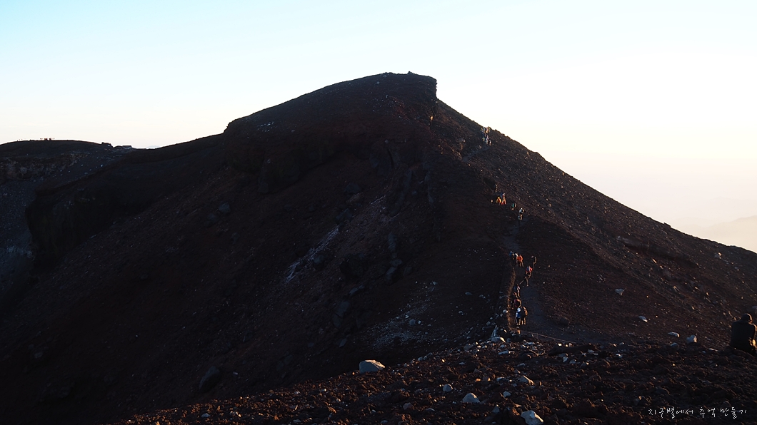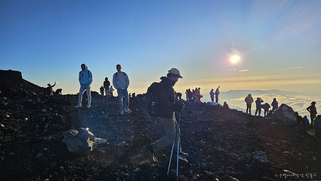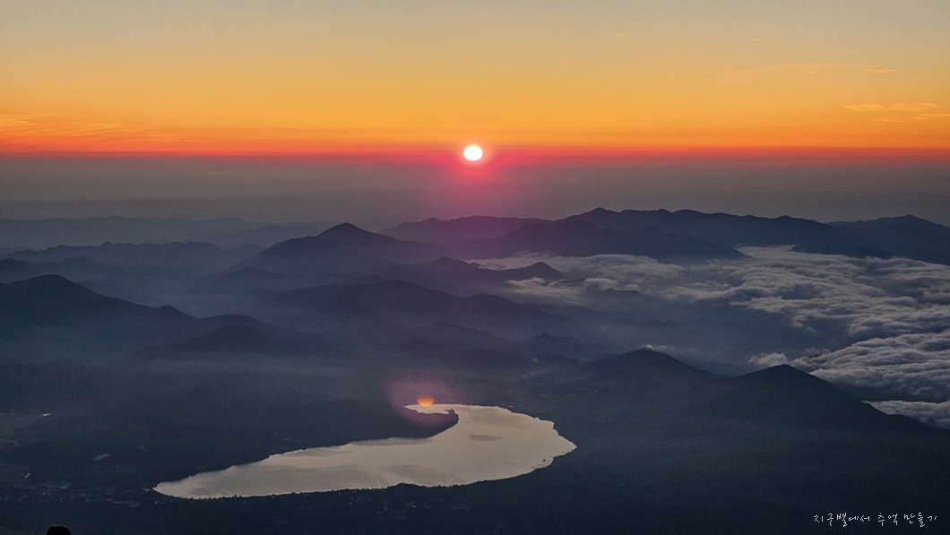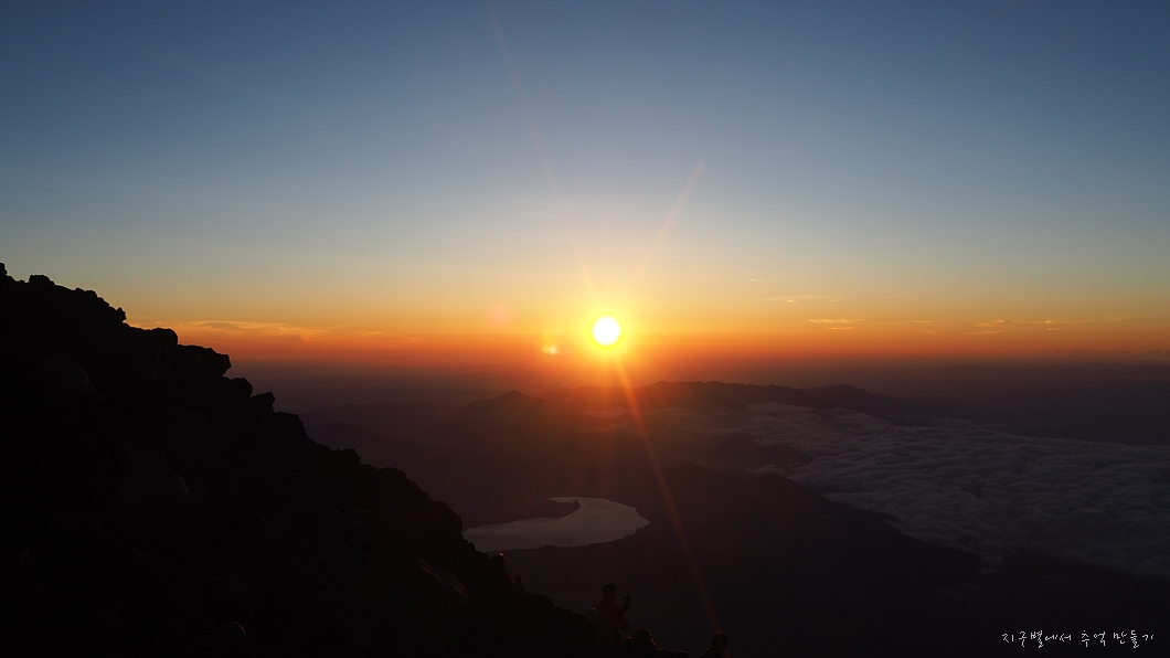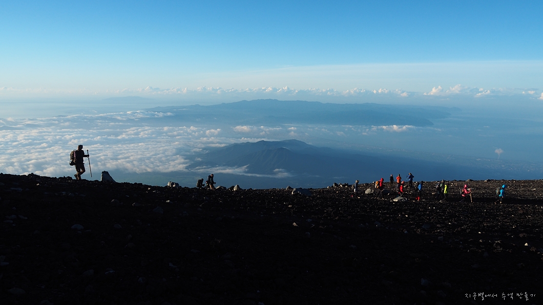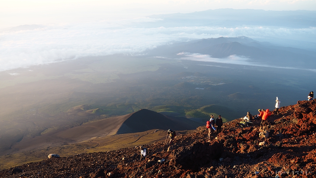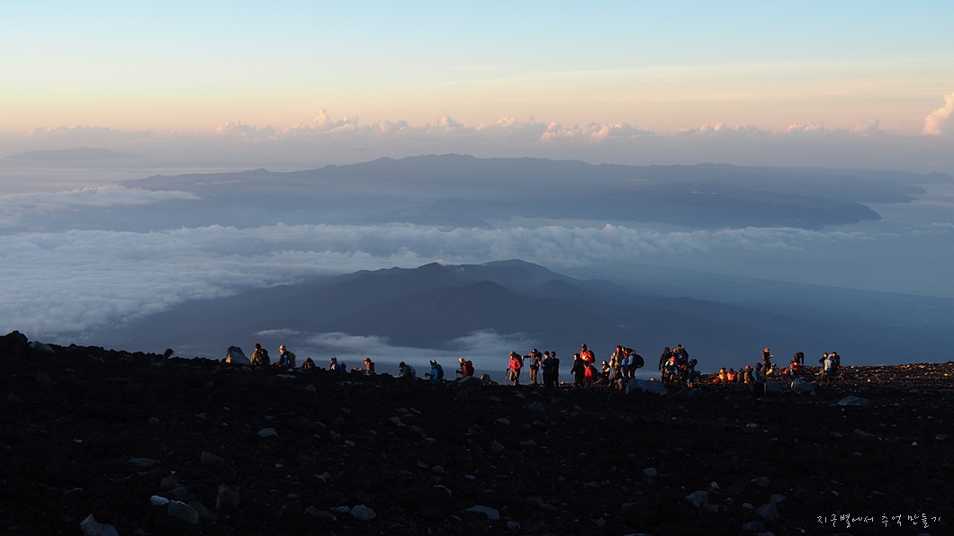 후지산 일출은 우리가 흔히 지리산 천왕봉 일출을 볼 때 3대가 덕을 쌓아야 가능하다고 하는데 이곳은 날씨가 더 변화무쌍하여 일출 구경이 그리 흔하지 않다고 하네요.