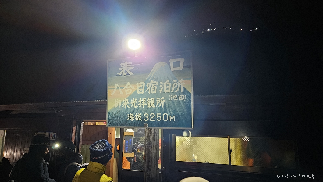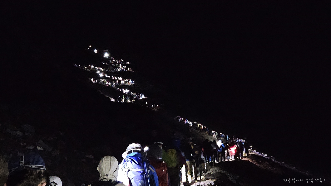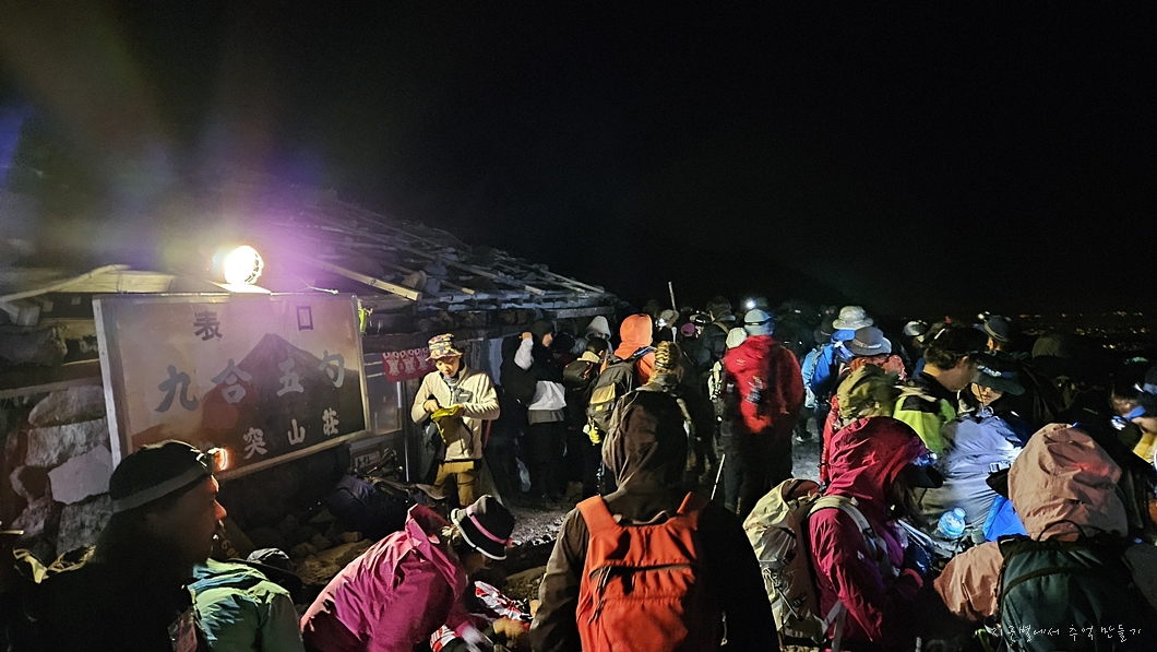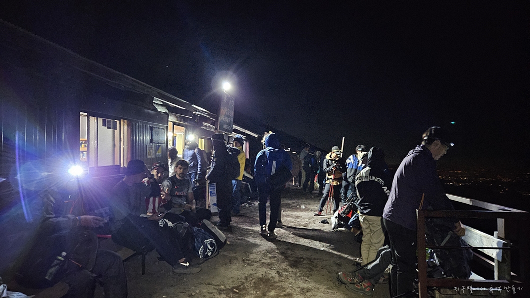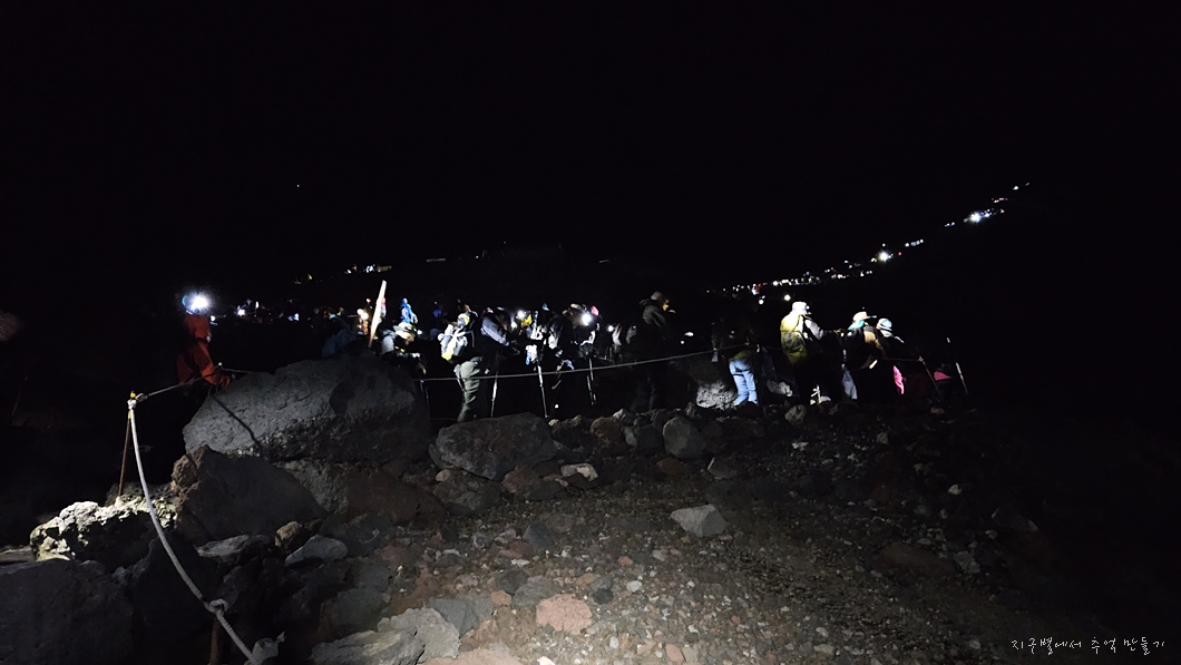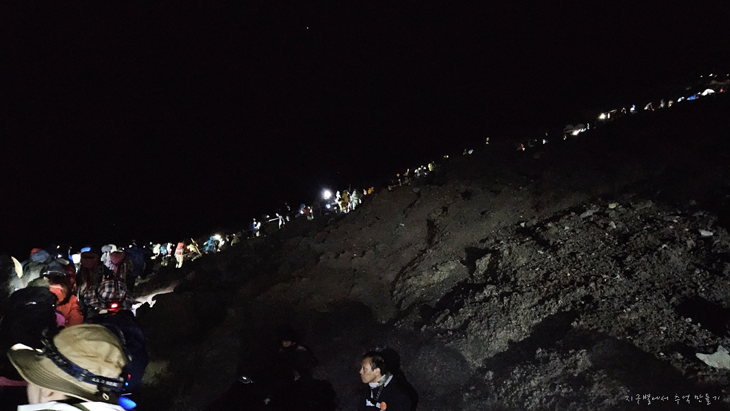 후지산 중턱까지 버스 편으로 올라서 6합목 산장에서 저녁 먹고 잠시 눈 붙인 후 본격적인 산행은 밤 11시에 시작했답니다.