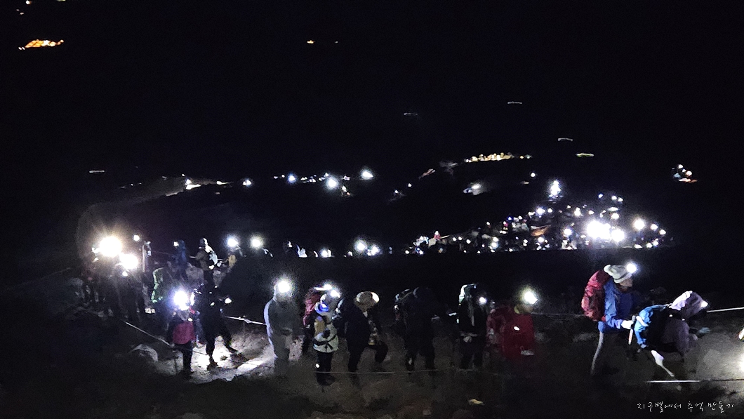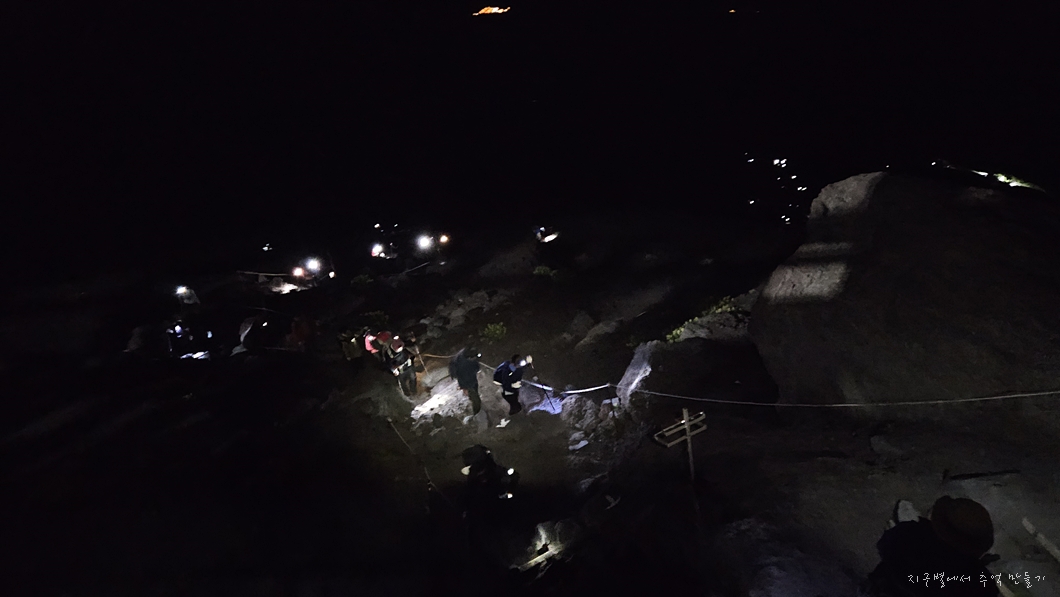 랜턴을 밝히고 오르는 이들이 내려다 보입니다.