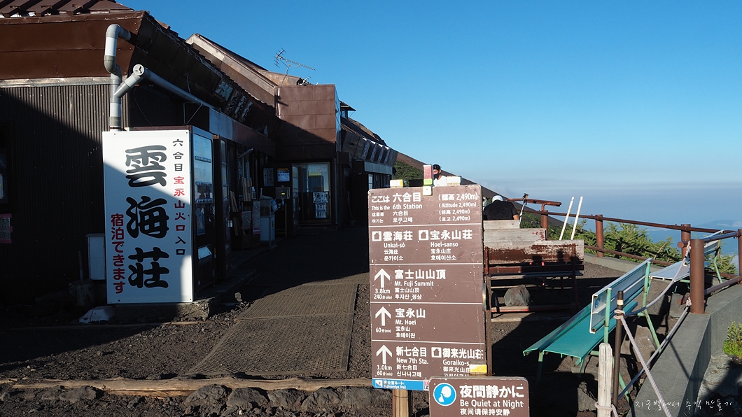 후지산이 해발 3,776m이니까 나머지 고도 1,500m 정도(?)만 자력으로 걸어 오르면 된다는 계산입니다.