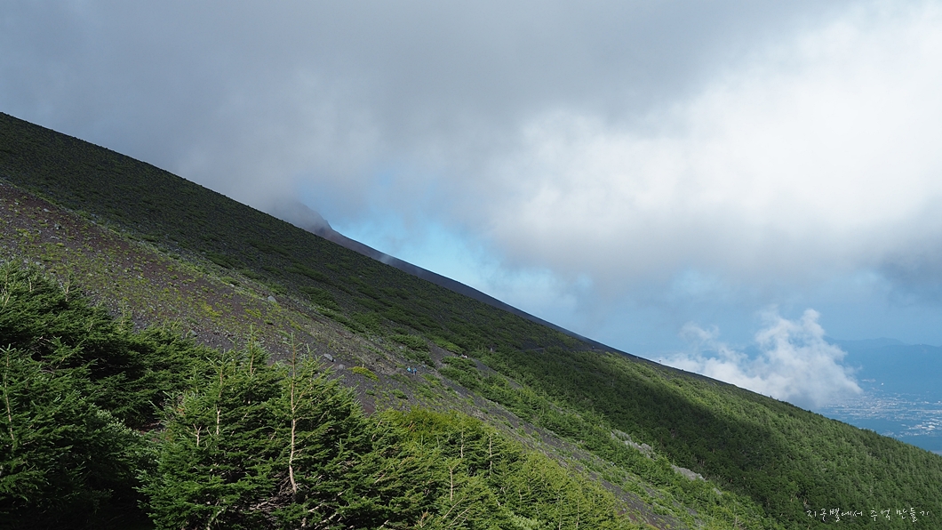 당겨서 보니 왼쪽 능선으로 오르는 이들이 있는데 저 코스는 코텐니와에서 올라 호에이분화구를 거쳐 고텐바 루트와 합류하는 코스 같네요.