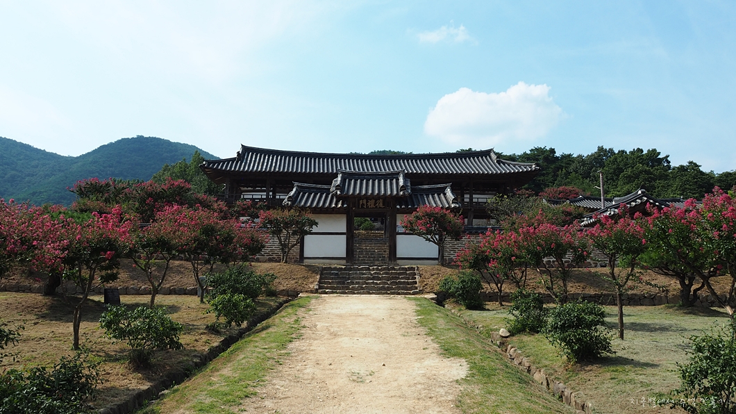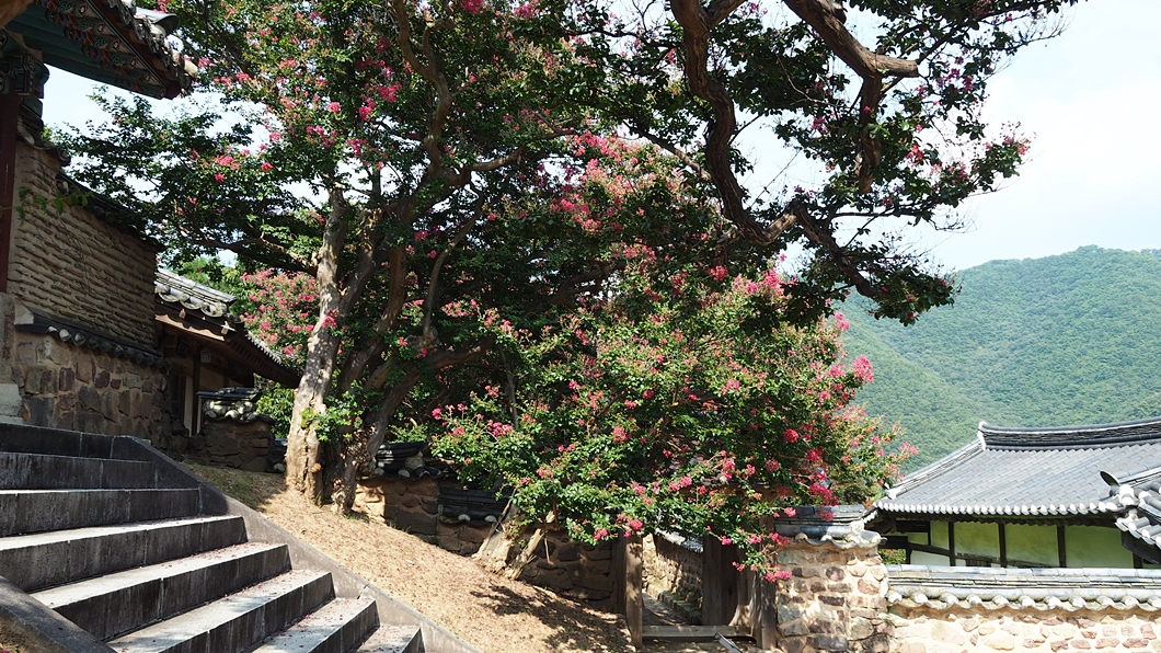 오래된 서원 건물 사이에서 붉은 꽃을 피우는 배롱나무의 운치는 다른 곳에서는 느낄 수 없는 아름다움을 풍깁니다.