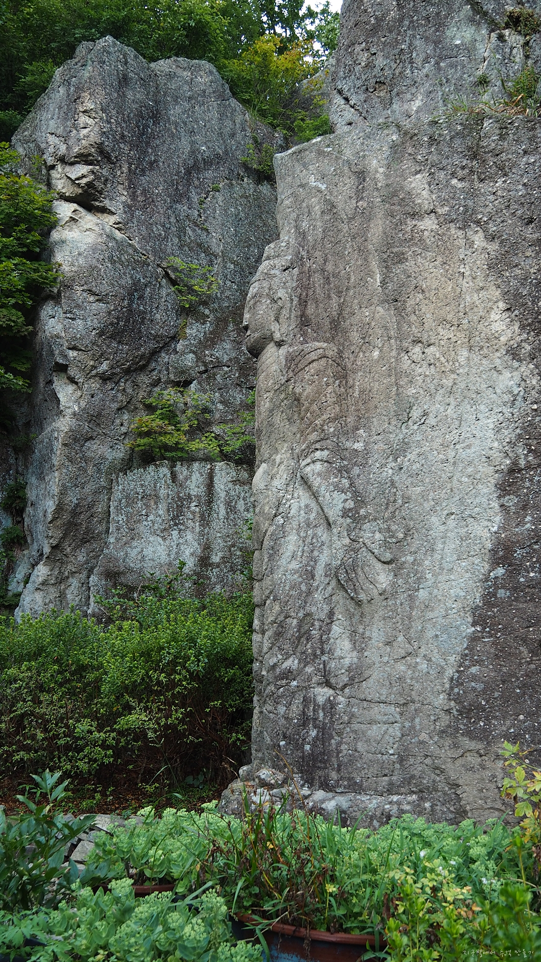 특이하게 바위 모퉁이에 조각이 되어 있답니다.