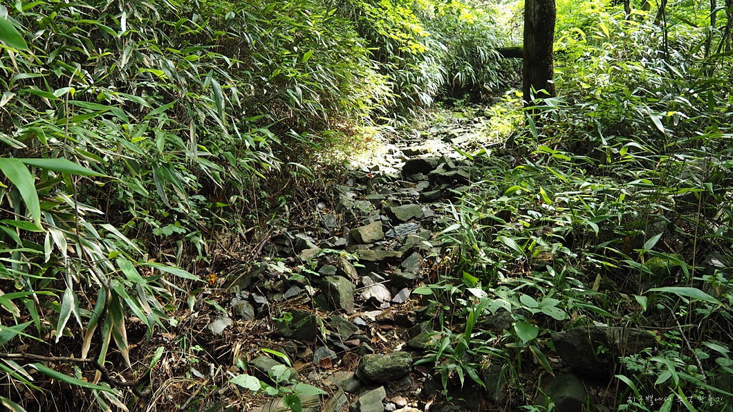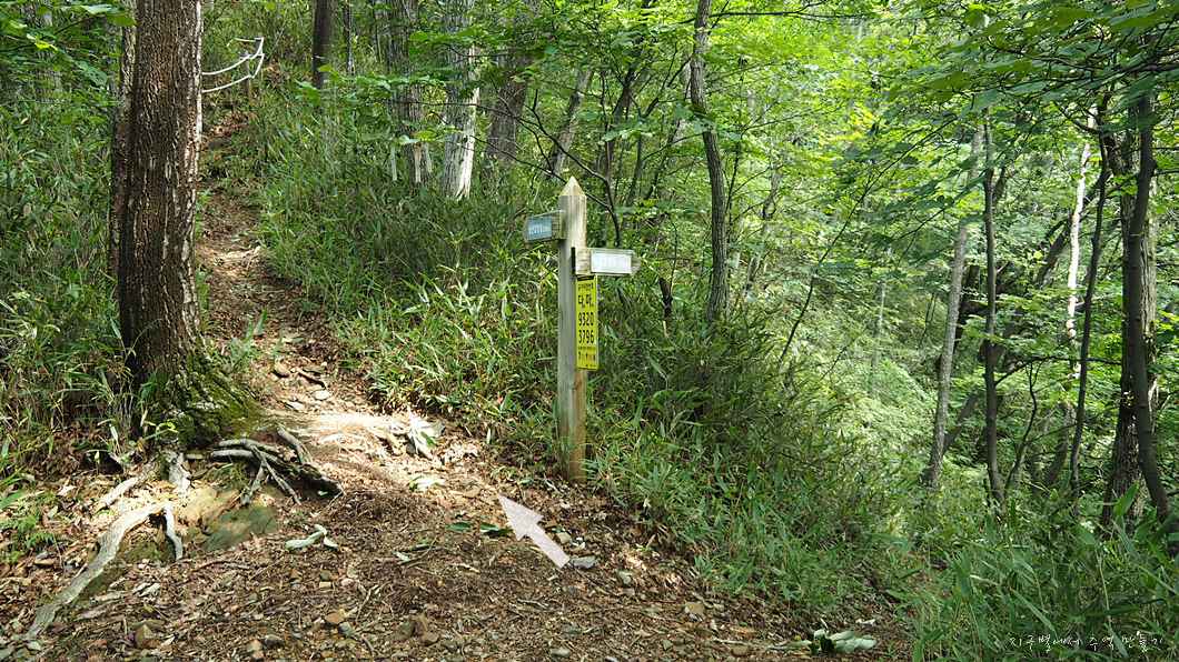 한참을 오르면 다시 등산로가 두 갈래로 갈라지는데 왼편은 능선을 따라 오르고 오른편은 계곡을 따라 오르는 길입니다.