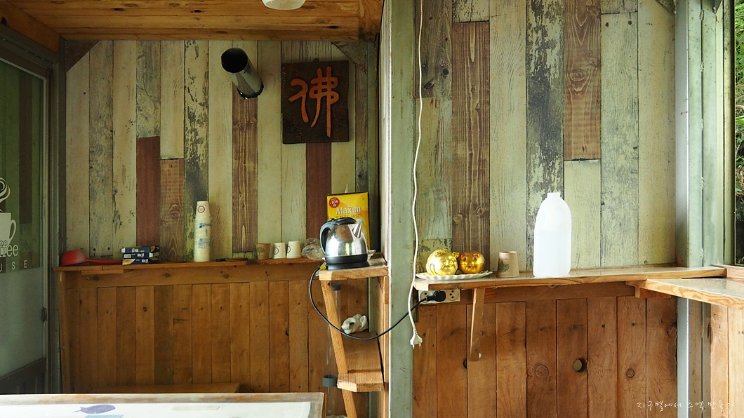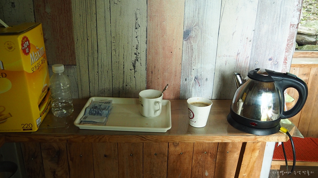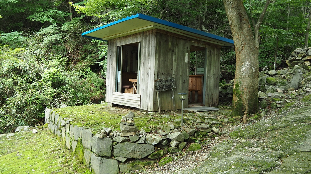 암자를 되돌아 내려오는 길에는 해우소 건물이 있고 그 앞에 휴게소 비슷한 자리가 마련되어 있습니다.