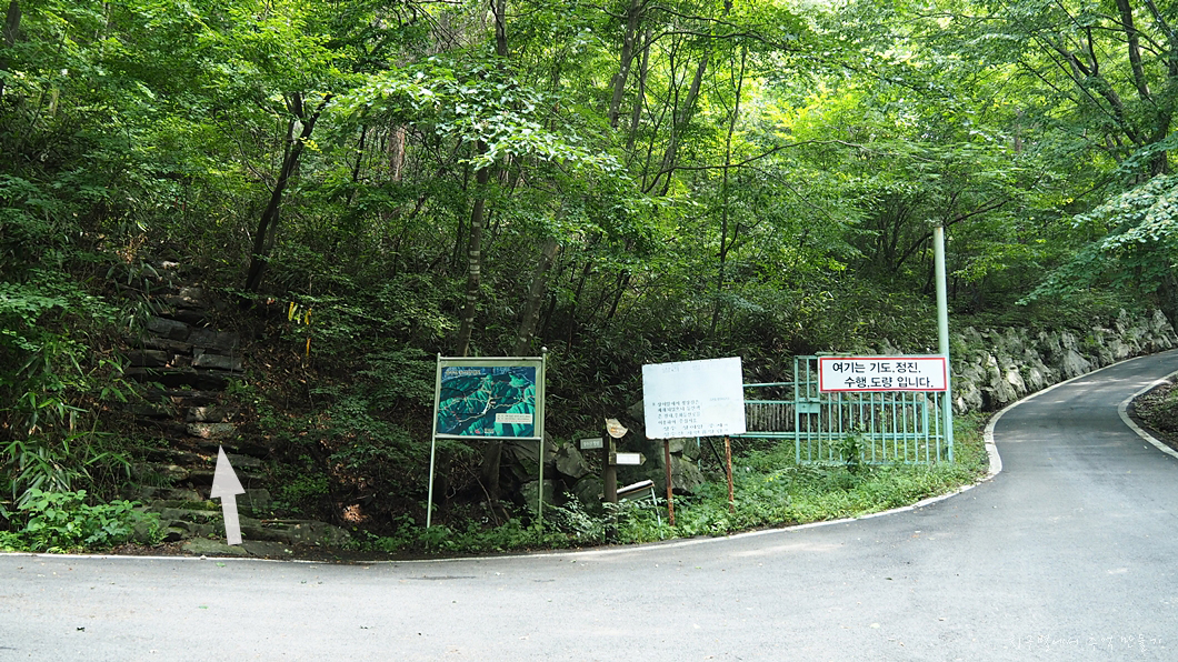 상이암으로 도로를 따라 올라가다가 이곳에서 화살표 방향으로 본격 산행입니다.