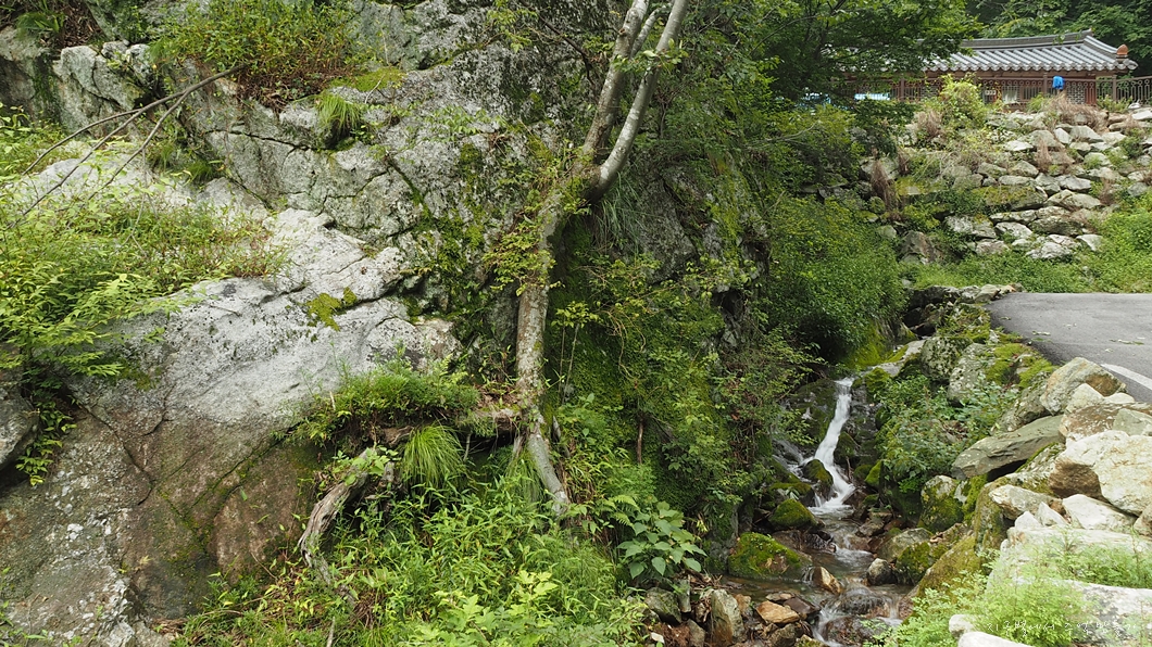 개울옆 암벽을 꽉 붙잡고 살아가는 나무 한그루가 보이네요.