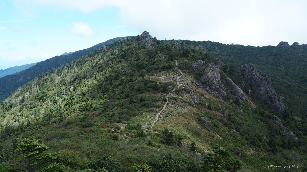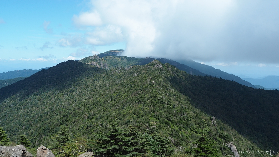 짝궁뎅이 반야 우측으로 길게 이어지는 서북 능선.