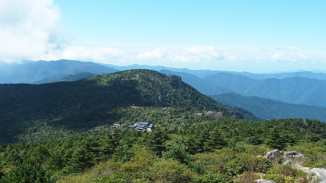 아래쪽으로 세석대피소가 내려다보입니다.