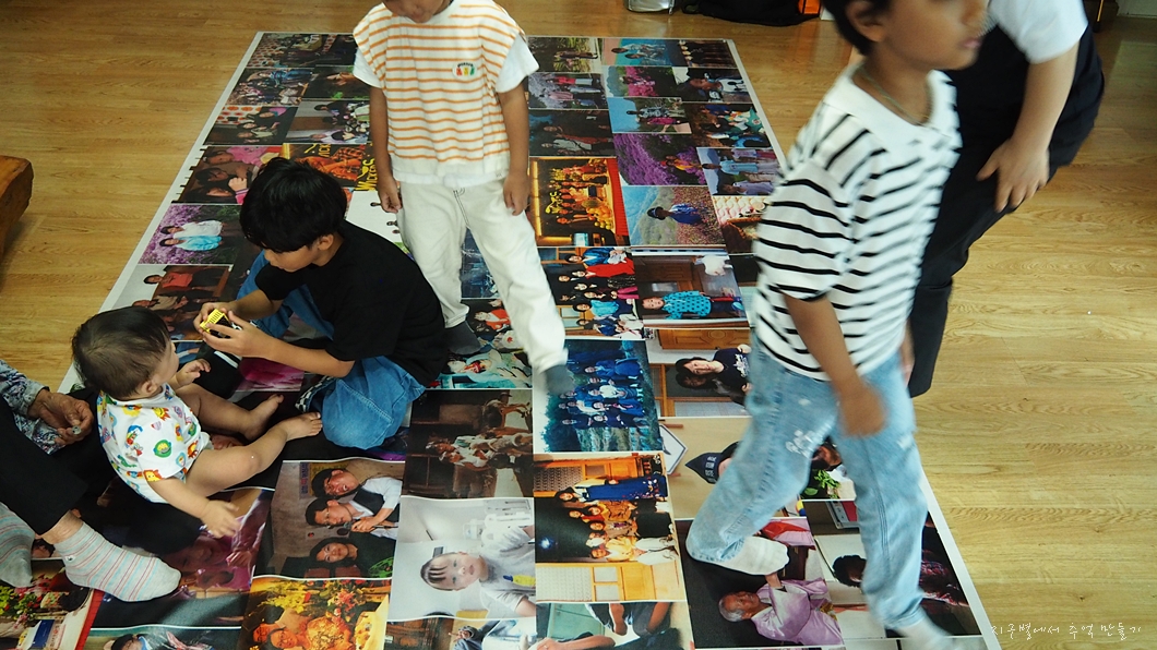 엄마의 추억을 일깨우는 옛 사진들을 모아서 커다랗게 만들었답니다.