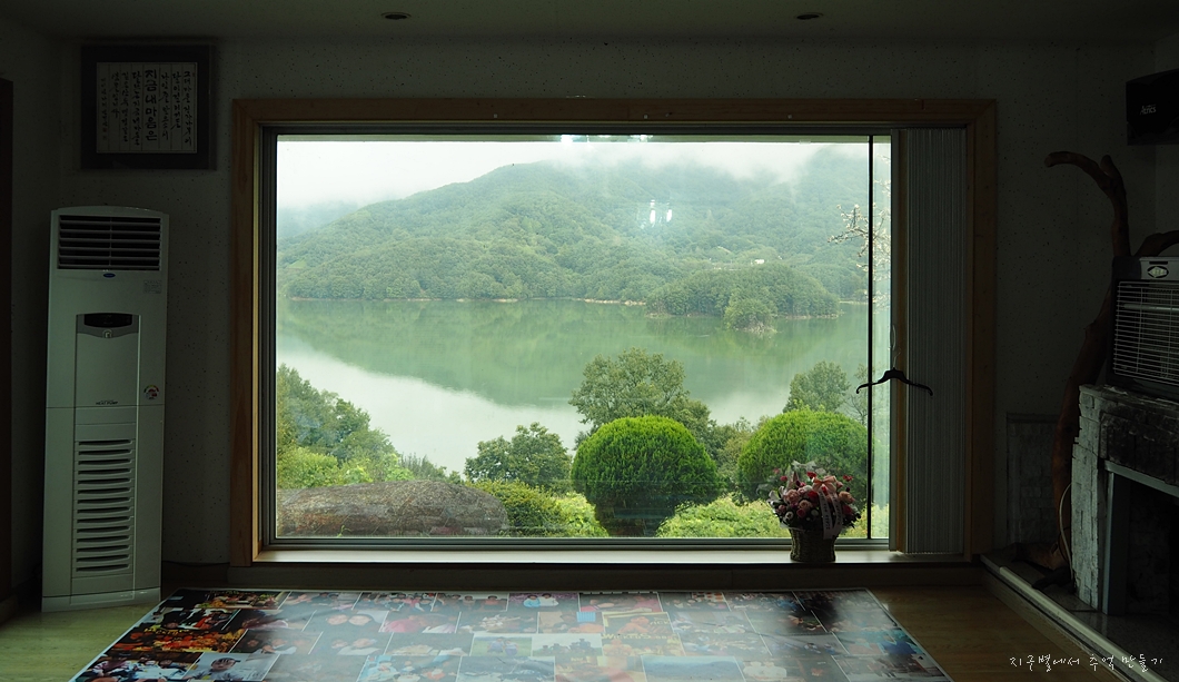펜션은 커다란 창 밖으로 합천호가 내려다보여 참 운치 있는 곳입니다.