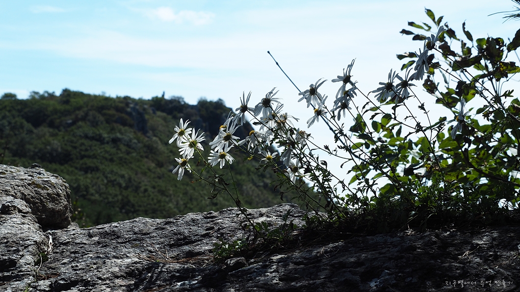 바위 위에 예쁘게 피어 있는 들국화.