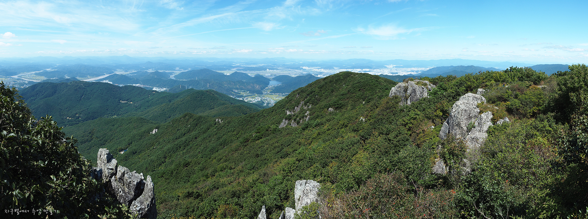 대견봉 비슬산쪽과 낙동강을 굽어보는 비슬산 정상의 파노라마 풍경입니다.
