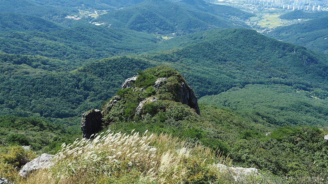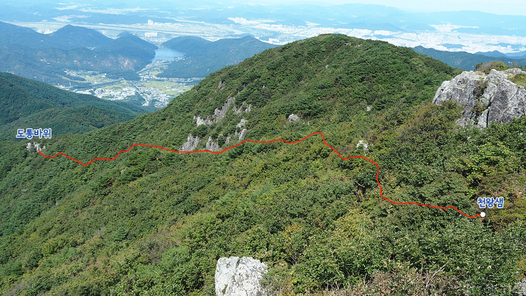 그 앞으로 앞산으로 연결되는 종주 능선이 예쁘게 이어져 있구요.